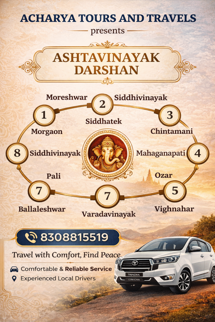 Our fleet is regularly inspected and upgraded to ensure safety and comfort, allowing customers to travel with complete peace of mind. Whether someone is planning a family holiday, a pilgrimage like Ashtavinayak or Jyotirlinga darshan, airport transfers, outstation tours, or daily business travel, we tailor our services to match their requirements perfectly.